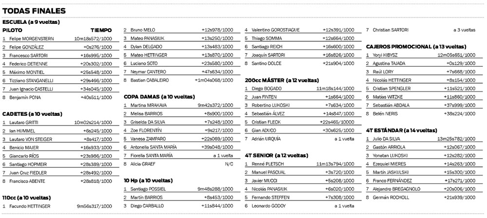 Los más pequeños también tuvieron acción ayer. Y en la categoría Cadetes celebró Lautaro Gritti, mientras que en Escuela el triunfo quedó en manos del líder Felipe Morgenstern.