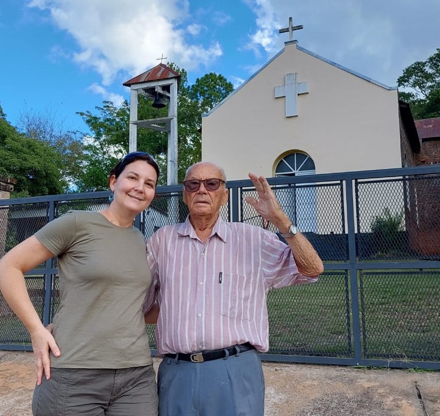 El templo se levantó frente a lo que es hoy la plaza central, “pero por aquel entonces funcionaba en el lugar la mejor cancha de fútbol de la localidad. La obra se hizo en varias etapas porque no se podía hacer todo de golpe por la época”, alegó, quien también recibió un pergamino por su activa participación en los inicios de la Fiesta Provincial Raíces.