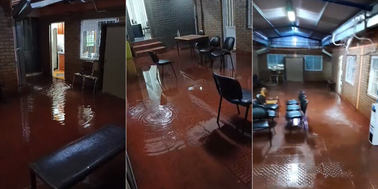 El Tribunal Penal 1 de Oberá amaneció este martes bajo agua, producto de las fuertes precipitaciones que cayeron sobre la ciudad durante la madrugada.