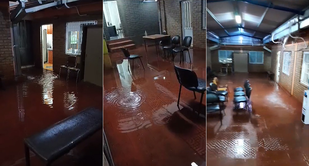El Tribunal Penal 1 de Oberá amaneció este martes bajo agua, producto de las fuertes precipitaciones que cayeron sobre la ciudad durante la madrugada.