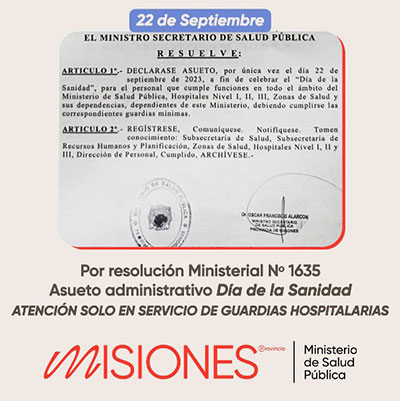 Desde el Ministerio de Salud Pública comunicaron que este viernes 22 de septiembre habrá asueto por celebrarse el Día de la Sanidad.