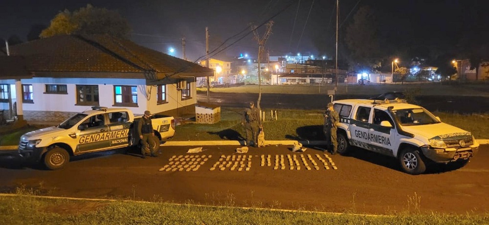 Este martes personal de Gendarmería Nacional realizaba un patrullaje pedestre sobre la ruta Nacional 14, en San Pedro, más precisamente en inmediaciones al Paraje Puerto Argentino, cuando observaron montículos que sobresalían de la tierra. Tras una revisión exhaustiva encontraron tres bolsas cubiertas con la vegetación.