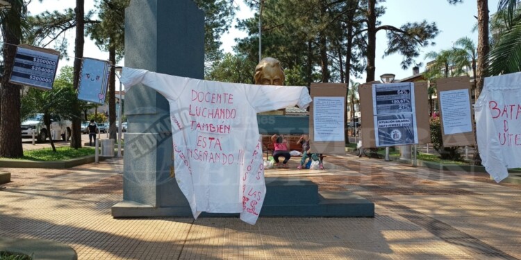 “Decidimos en asamblea, buscar una alternativa, para visibilizar la situación que estamos atravesando los trabajadores de la educación. Queremos que los vecinos conozcan qué estamos reclamando” explicó Liliana Muller, referente de UTEM, Unión Trabajadores de la Educación de Misiones.