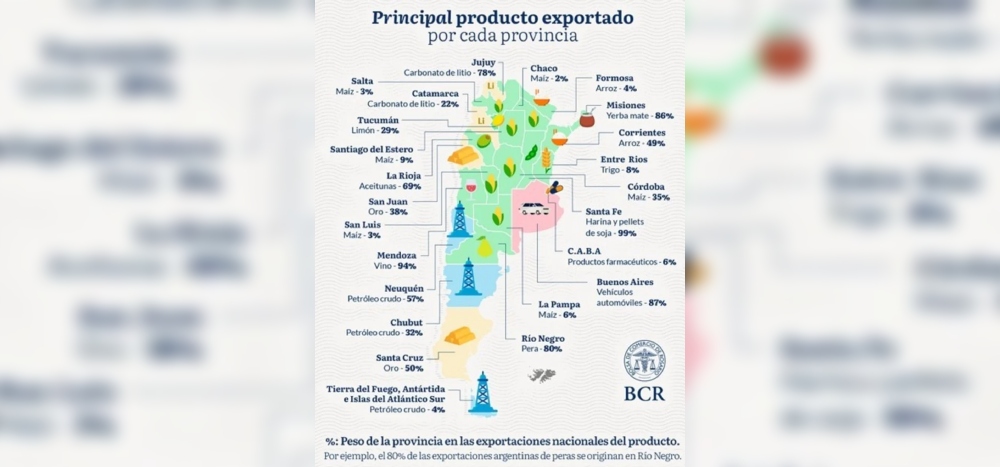 Además de Santa Fe y el enorme protagonismo de la industria aceitera sobre su comercio exterior, otras provincias tienen fuertes especializaciones en sus exportaciones. En este sentido, Mendoza explica una porción gigante de las exportaciones nacionales de vino, mientras lo mismo podemos decir de Misiones y la yerba mate, Buenos Aires y los autos, La Rioja y las aceitunas, Río Negro y las peras, Corrientes y el arroz, entre otras provincias. Como puede verse en algunas de estas provincias, el peso de las economías regionales en el comercio exterior argentino es enorme. Ampliado a todas las cadenas agro, no debe olvidarse que la agroindustria fue responsable de 3 de cada 5 dólares que se generaron por exportaciones en 2022.