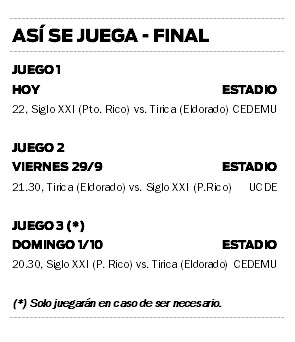 Con esos condimentos, puertorriqueños y eldoradenses abren una nueva definición, la primera entre ambos, que promete esta noche un marco desbordante en el “Pierotti”. La serie, luego, se trasladará a la Capital del Trabajo, donde el viernes 29 del corriente jugarán el segundo punto. De ser necesario un tercer cotejo, el mismo iría el domingo 1/10 nuevamente en Puerto Rico.