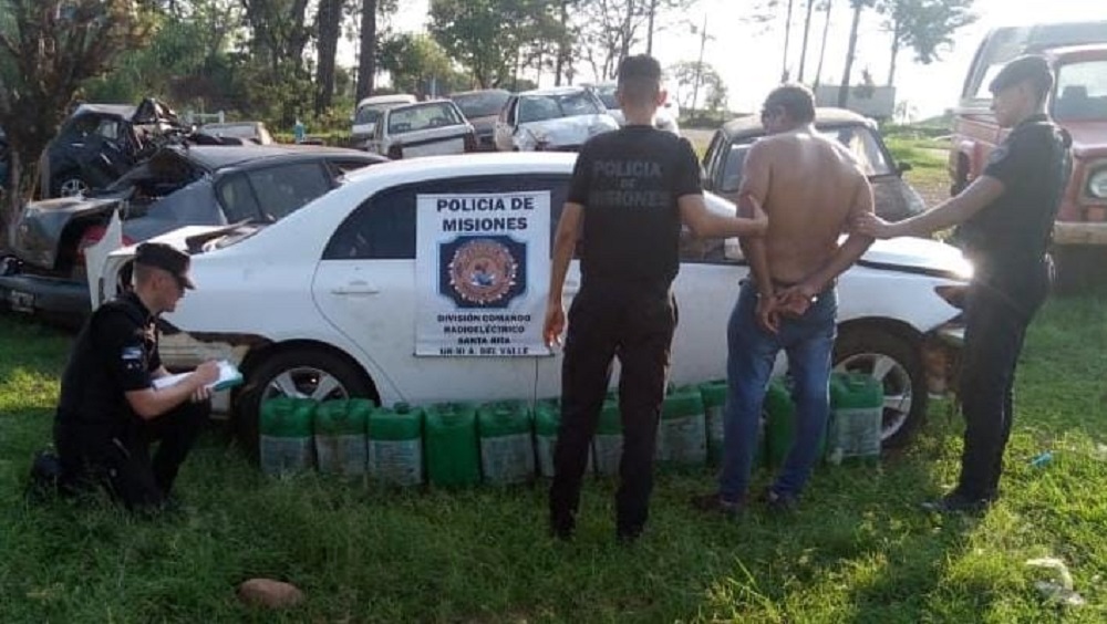 Requisaron la unidad y detectaron que transportaba once bidones de 20 litros cada uno de herbicida de la vecina orilla. Finalmente, el conductor del Toyota fue hallado entre las malezas y quedó detenido en averiguación del hecho por orden del juez de Instrucción en turno de Oberá.