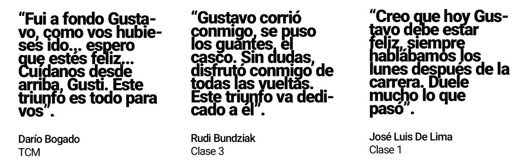 “Qué mejor que este triunfo, es todo para Gustavo”, dijo Bogado a EL DEPOR, tras lo cual elevó la vista al cielo y le habló directamente a su amigo: “Fui a fondo Gustavo, como vos hubieses ido… espero que estés feliz, este triunfo es para vos… Cuídanos desde arriba, Gusti”. Emoción a flor de piel.