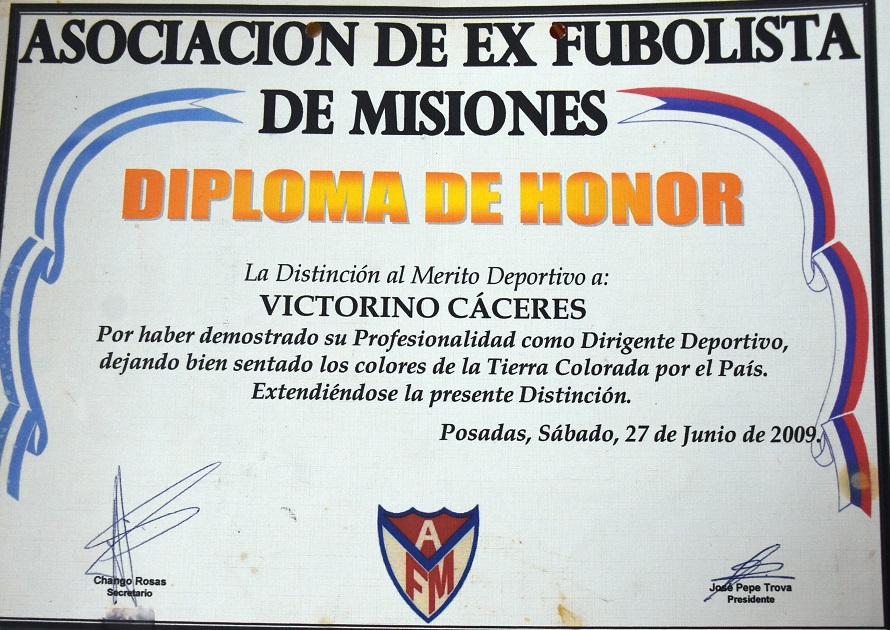 Cáceres se unió al club cuando tenía 25 años. “Dejé de practicar el fútbol porque en la Liga Posadeña me exigían que fuera futbolista o dirigente, una de dos, porque era delegado del Club ante la Liga Posadeña de Fútbol. Desde esa fecha, hace más o menos 65 años, es que estoy ligado al Club como dirigente y como colaborador. También cumplo el rol de asesor en la parte directiva porque a veces las comisiones son medio novicias y entonces necesitan el apoyo, el asesoramiento de personas que ya conocen el movimiento”, manifestó, quien fue presidente, secretario, tesorero, revisor de cuentas, y ahora disfruta de su estancia como socio vitalicio.