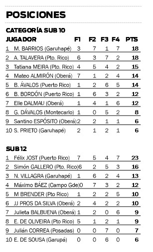 Vale recordar que la primera fecha se disputó en abril pasado en San Vicente; la segunda fecha fue en mayo, en Leandro N. Alem; la tercera se mudó a Puerto Rico en junio y Garuhapé fue escenario de la cuarta.