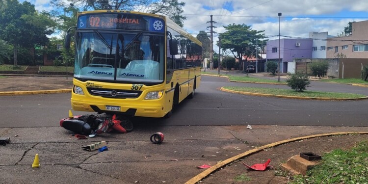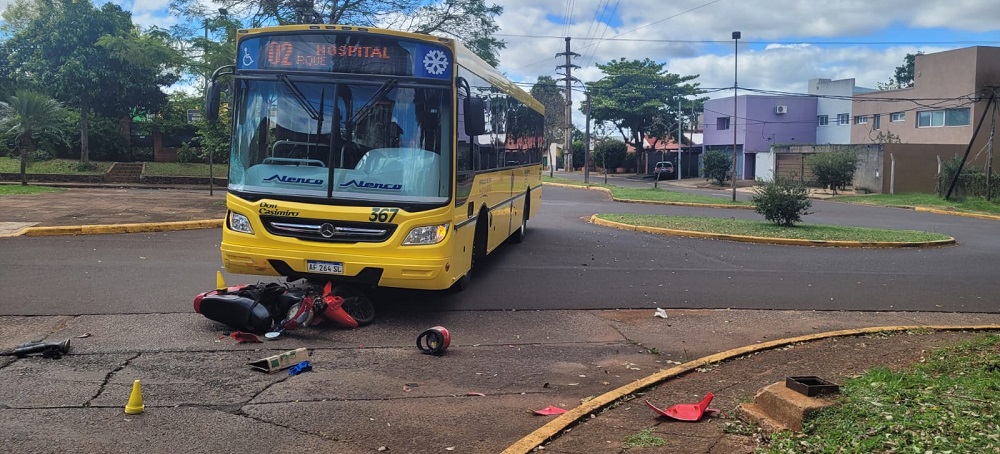 Esta tarde sobre la avenida Buchardo y la rotonda que conecta con la avenida López Torres de Posadas, un colectivo de transporte urbano de pasajeros y una moto protagonizaron un siniestro vial.