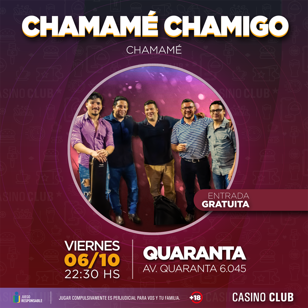 El grupo CHAMAMÉ CHAMIGO, interpreta chamamé del estilo tradicional, interpretando a Ernesto Montiel, Isaco Abitbol, Tránsito Cocomarola, Fito Ledesma entre otros. Si bien tiene poca antigüedad grupal, sus integrantes son reconocidas figuras del género con mucha trayectoria por diversos escenarios por lo que se garantiza un espectáculo de alto nivel de ejecución y puesta en escena.