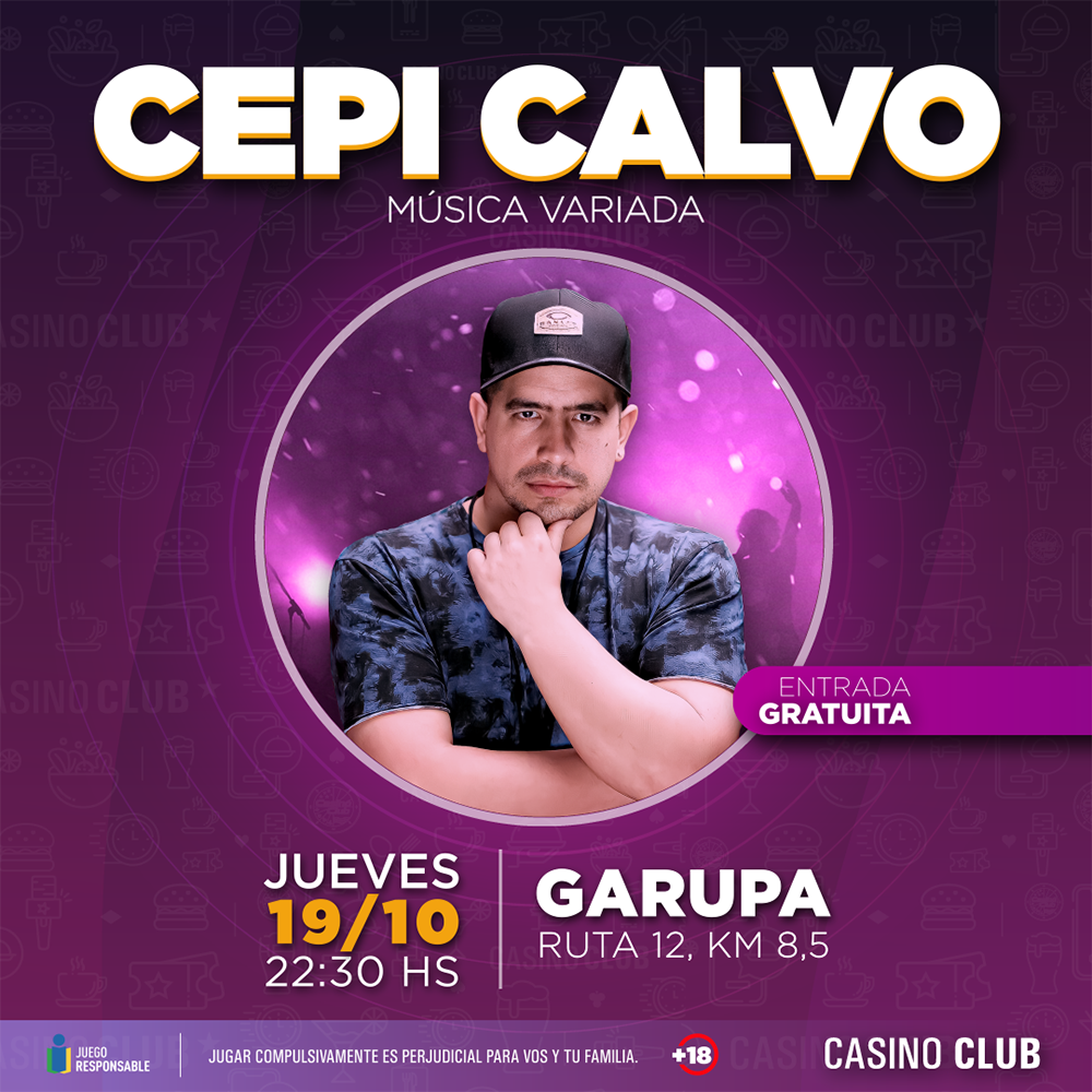 El talentoso cantante Cepi Calvo se prepara para cautivar a la audiencia en una noche especial de música en vivo con un amplio repertorio en Casino Club. Este evento promete ser una experiencia musical única que no querrás perderte.