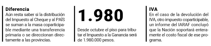 Las cuentas que hicieron los gobernadores del NEA y NOA, documento al que accedió en exclusiva PRIMERA EDICIÓN, arrojan que de aprobarse el proyecto, los distritos percibirían el próximo año $850.584 millones por el Impuesto al Cheque y otros $840.057 millones por el Impuesto PAÍS. El total sería de $1.690.641.000, lo mismo que se perdería con Ganancia.