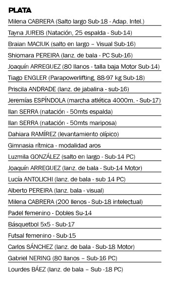 También celebraron en natación adaptada Mía Fagundez y Tomas Krauss, en los 25 metros de los estilos kroll y espalda, respectivamente. En tanto que el equipo misionero de handball fue campeón de la categoría Sub-16.