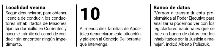 No obstante, señaló que en este caso “lamentablemente no hay un registro nacional para la inhabilitación, entonces lo que se expuso es ver cómo gestionar a nivel nacional. Porque los que estén con esta condición y fijan domicilio en Corrientes como provincia vecina en este caso y se otorga el carnet, quizás esa persona no está autorizada a manejar en Misiones. La verdad que excede a como legislar, pero vamos a transmitir esta problemática al Poder Ejecutivo para analizar si podemos ver con los legisladores nacionales que haya un banco de datos con los inhabilitados por la Justicia a manejar”.