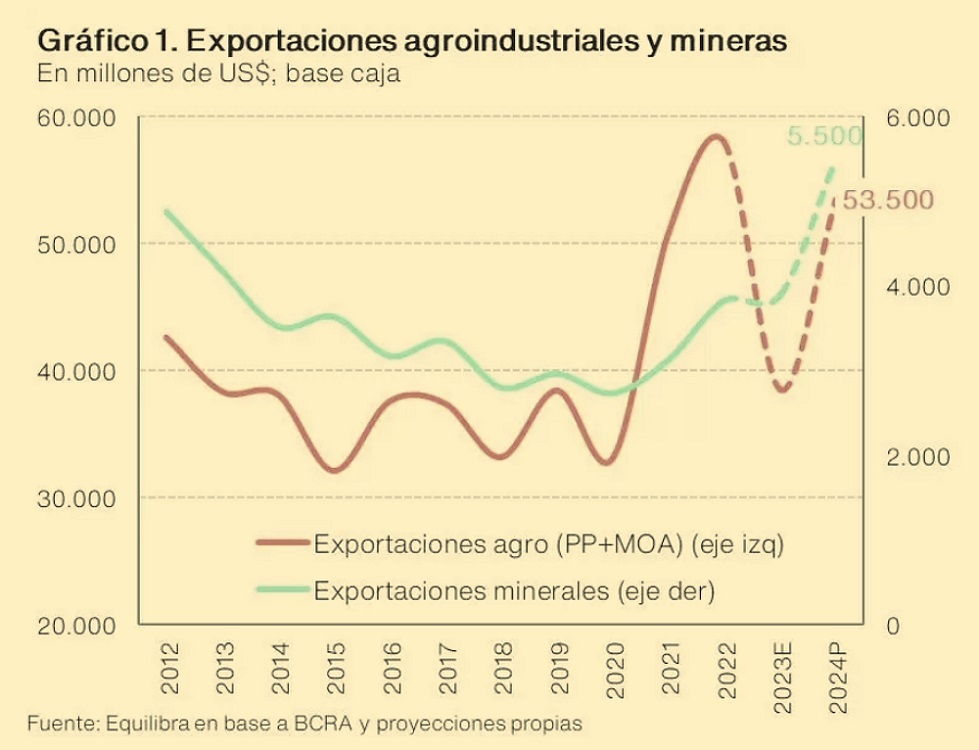 Tras la pérdida de US$ 20.000 millones de agrodivisas en 2023, la recuperación de la producción agropecuaria esperada para 2024 permitiría alcanzar exportaciones por US$ 53.500 millones (+43% vs 2023).