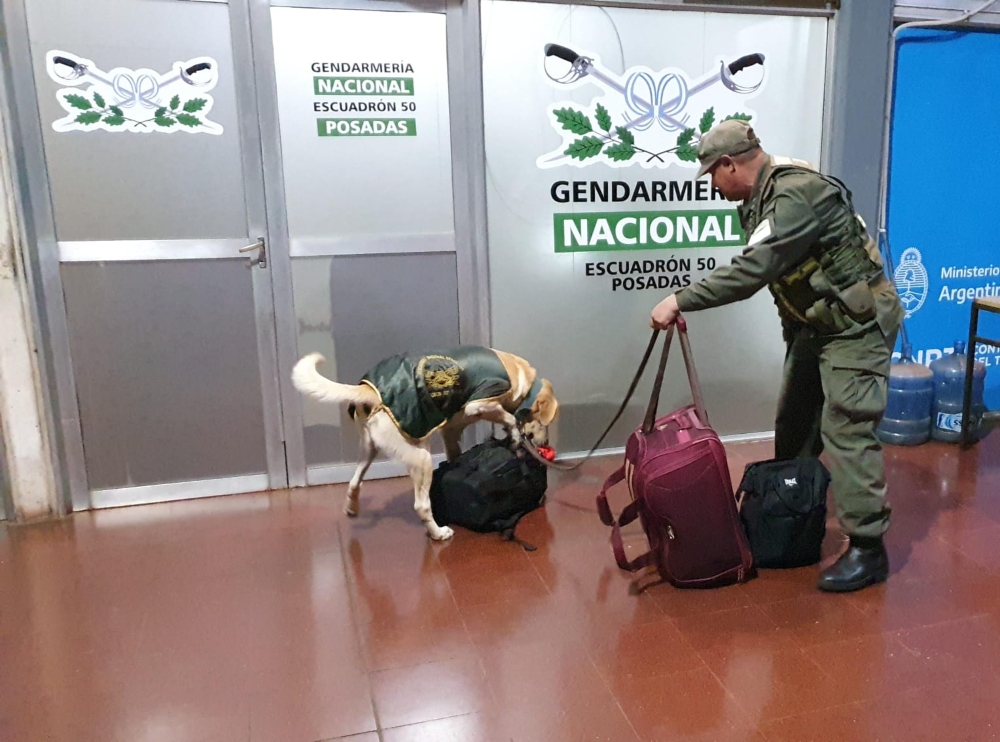 Gendarmería realizó dos procedimientos en la Terminal de Posadas en los que el can antinarcótico “Gringo” fue clave para detectar marihuana valuada en más de 20 millones de pesos.