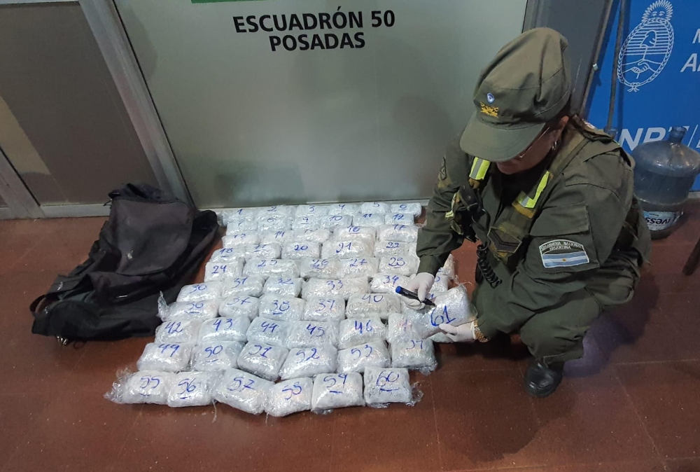 Anoche los efectivos pertenecientes al Escuadrón 50 “Posadas” que recorrían las instalaciones de la Terminal de Ómnibus visualizaron un bolso entre los andenes 1 y 2, sobre el cual el can detector de narcóticos reaccionó de manera exaltada, como lo hace habitualmente ante sustancias estupefacientes.