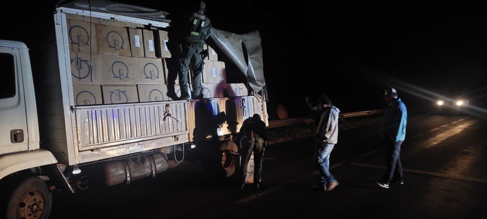 Interceptaron el camión en el que circulaban dos hombres mayores de edad y tras la inspección realizada descubrieron que el compartimento de carga estaba repleto de cajas de cigarrillos de origen extranjero, careciendo de cualquier tipo de aval aduanero.