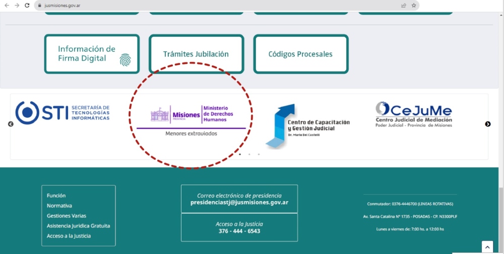 También se puede acceder directamente ingresando a https://derechoshumanos.misiones.gob.ar/menores-extraviados/