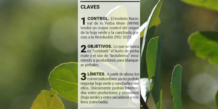 Una resolución con fecha del 2 de octubre, pero publicada el pasado miércoles en el Boletín Oficial, le da al Instituto Nacional de la Yerba Mate (INYM) un mayor control sobre toda la cadena y busca terminar con diferentes maniobras en el sector que van desde el hurto de hoja verde hasta una especie de uso de testaferros para blanquear yerbales.