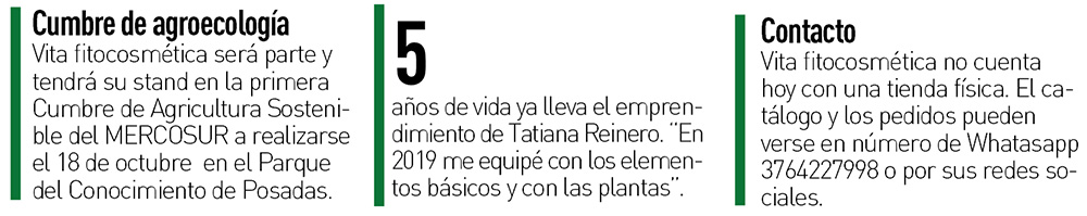 Fue así como en Candelaria nació “Vita fitocosmética”, un emprendimiento de cosmética y productos de higiene personal elaborados de manera artesanal.
