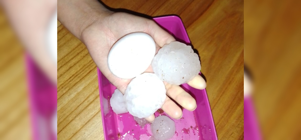 Los reportes meteorológicos anticipaban que la llegada de las lluvias en toda la región podrían estar acompañadas por la presencia de granizo, lo que finalmente ocurrió en las localidades mencionadas pero en especial en Campo Viera, donde lo llamativo fue el tamaño de las “piedras” que se asemejaban a un huevo de gallina.
