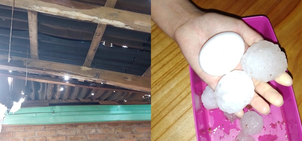 Cristaldo contó que los granizos “eran del tamaño de un huevo de gallina. Nuestro techo es de chapa de zinc y resonaba muy fuerte, eran como bombas espaciadas y mis chicos estaban muy asustados. En el fondo tenemos un tallercito y el gallinero, los dos con chapa de cartón que quedaron con muchos agujeros”.
