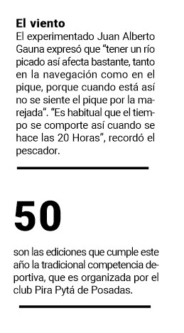 Con respecto a la competencia deportiva, el fiscal manifestó que “el pescador ya sabe adónde ir a buscar cada especie. Hay que recordar que cada especie da 100 puntos y al ser de modalidad variada, el pescador debe presentarlas vivas en las mesas de fiscalización”.