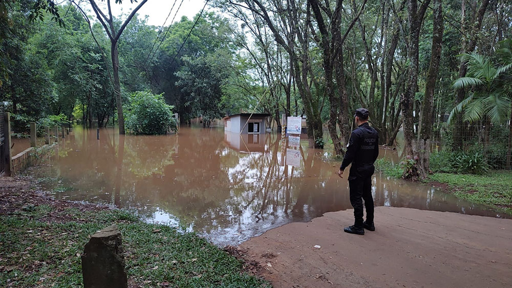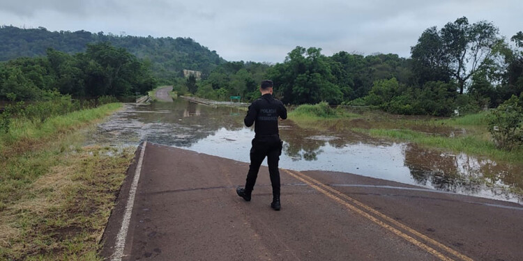 Por la crecida extraordinaria del río Uruguay, fue interrumpido el tránsito sobre el puente del arroyo Ramón ubicado sobre la ruta costera 2 de Panambí, en el límite entre esa localidad y Villa Bonita, debido a que el cauce del agua superó el nivel del paso, obstaculizando la circulación de ambos carrilles.