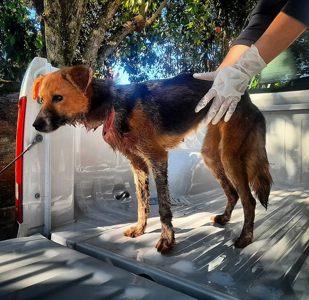 Ya en horas de esta tarde, la Comisaría de Garupá fue alertada por vecinos en razón de que en el barrio Santa Cruz, habría un perro con heridas y abandonado. Inmediatamente, los efectivos se dirigieron a la calle San Patricio y la plaza del lugar, donde vieron a una perrita con un corte que bordeaba todo su cuello, producto de una soga, por lo que fue llevada a la dependencia para la asistencia veterinaria.