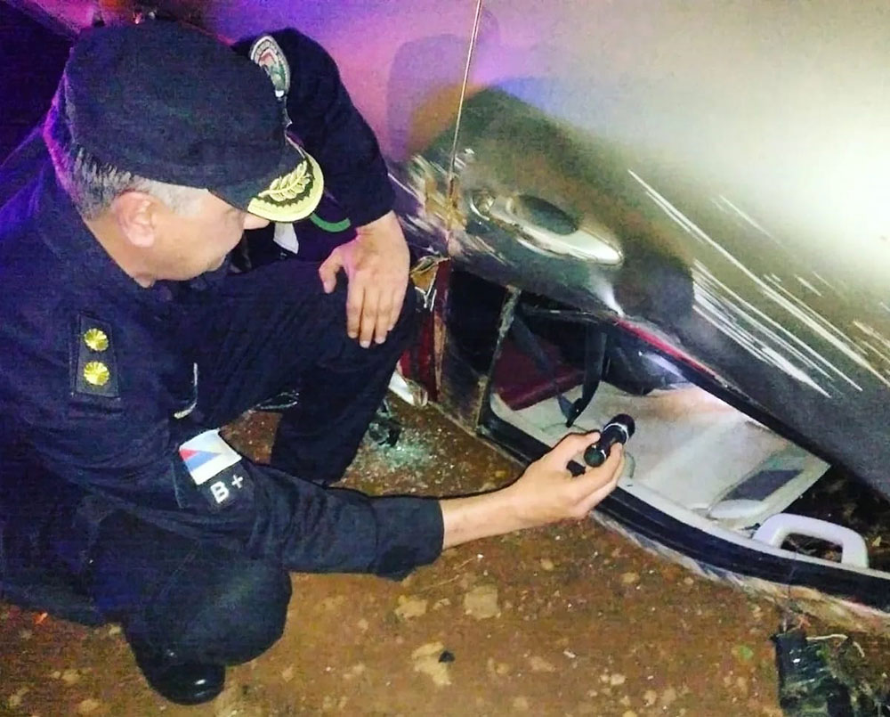 Con rápida coordinación y solicitud de apoyo, los efectivos localizaron la Toyota Hilux volcada en el kilómetro 960 de la ruta nacional 14. La misma, aparentemente cargada con cajas de cigarrillos extranjeros, fue hallada con los cristales destruidos.