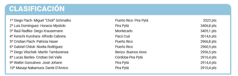 Con el triunfo en el bolsillo, Flach y Schmalko estiraron la definición del Campeonato Provincial. El cierre de la temporada será en Eldorado, dentro de dos semanas.