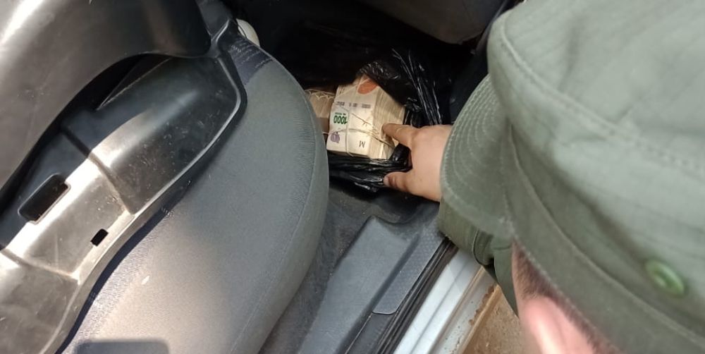 En horas de la noche, los uniformados detuvieron la marcha de un vehículo, con dominio extranjero, y hallaron ocultos numerosos fajos de billetes en moneda nacional, distribuidos en la guantera, debajo del asiento del conductor y dentro de una valija.