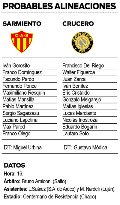 Sustentado en la buena actuación de la semana pasada, Crucero del Norte afrontará esta tarde un duro compromiso frente a Sarmiento de Resistencia, en el marco de la trigésima quinta fecha del torneo Federal A, Zona D.