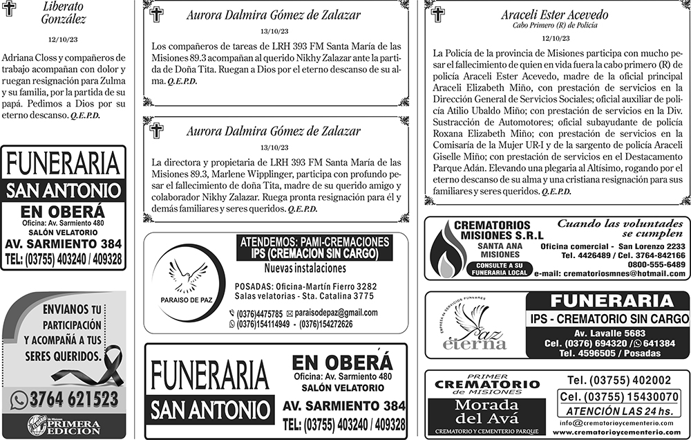 Tags: Fúnebres 14-10-2023
