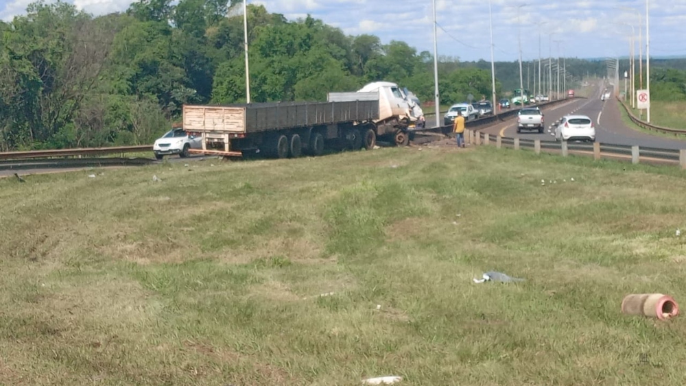 Un joven de 34 conducía un camión Mercedes Benz con acoplado y por causas que se tratan de establecer perdió el control y terminó despistando sobre el guardarraíl.