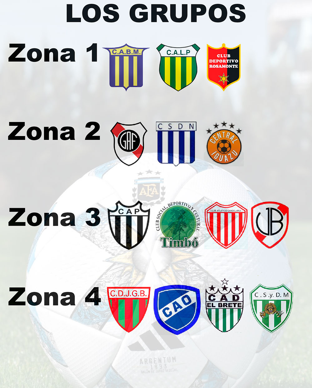 En tanto que la Zona 3 estará integrada por Atlético Posadas, Timbó (Jardín América), Atlético Candelaria y River (Villa Bonita). Por su parte, El Brete (Posadas), Brown (Posadas), Mandiyú (Garuhapé) y Atlético Oberá estarán en la Zona 4.