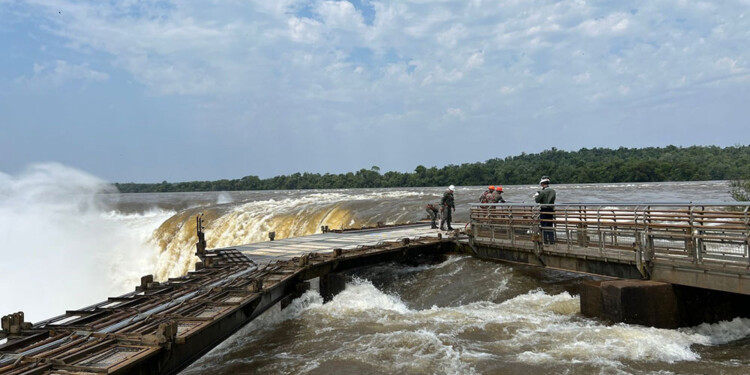 Técnicos y personal de infraestructura de Iguazú Argentina junto al personal del Cuerpo de Guardaparques se encuentran minuto a minuto evaluando la situación y actúan en consecuencia.