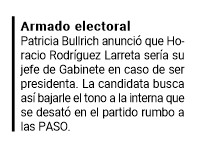 Además, Bullrich realizó una maniobra que todavía no puede ser medida, consistente en resucitar a Horacio Rodríguez Larreta, anunciando que sería su jefe de Gabinete en caso de asumir la presidencia.