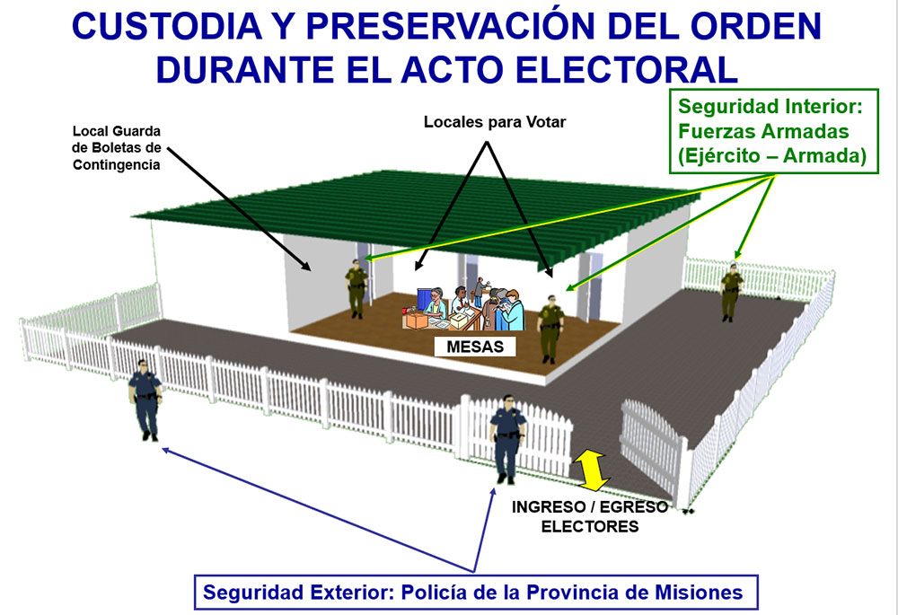 Además, asegurar la sede de escrutinio definitivo, que es la Legislatura de la provincia de Misiones, la protección de las urnas, documentación y actas hasta la finalización del recuento de votos.