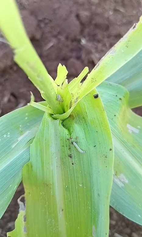 La plaga actúa en el cogollo de la planta, y si el alimento se hace escaso, las larvas se trasladan a otros cultivos desplazándose en masa como un “regimiento” causando distintos daños.