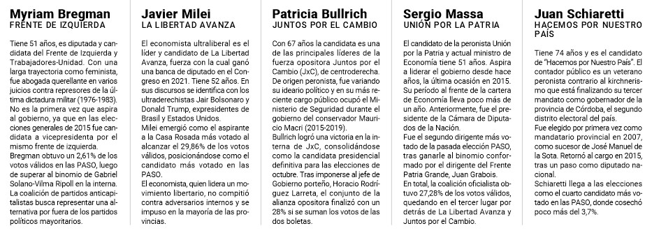 Los argentinos elegirán hoy entre cinco candidatos al sucesor del presidente Alberto Fernández para un período de gobierno de cuatro años.