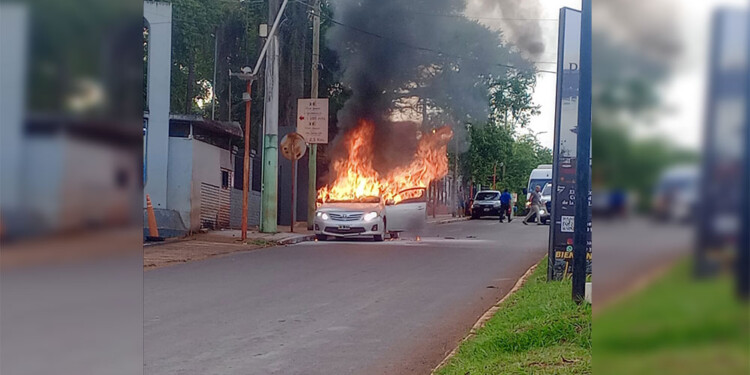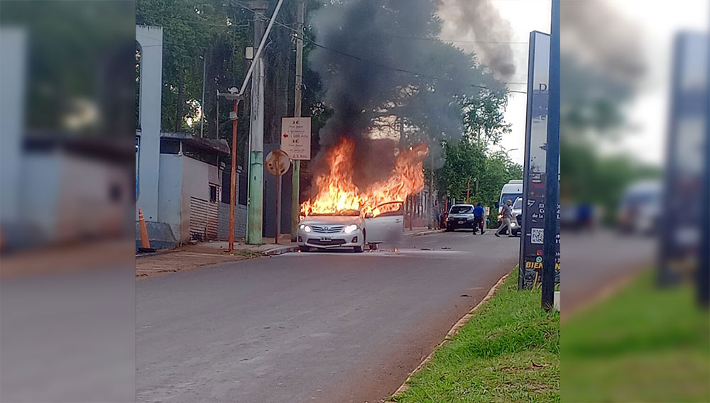 Alrededor de las 7 de este lunes, por causas que aún son materia de investigación, un auto Toyota Corolla que estaba estacionado sobre la avenida Victoria Aguirre casi Córdoba a la espera de acceder al servicio de la estación YPF y abastecerse de combustible, de un momento a otro comenzó a incendiarse.
