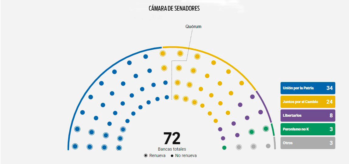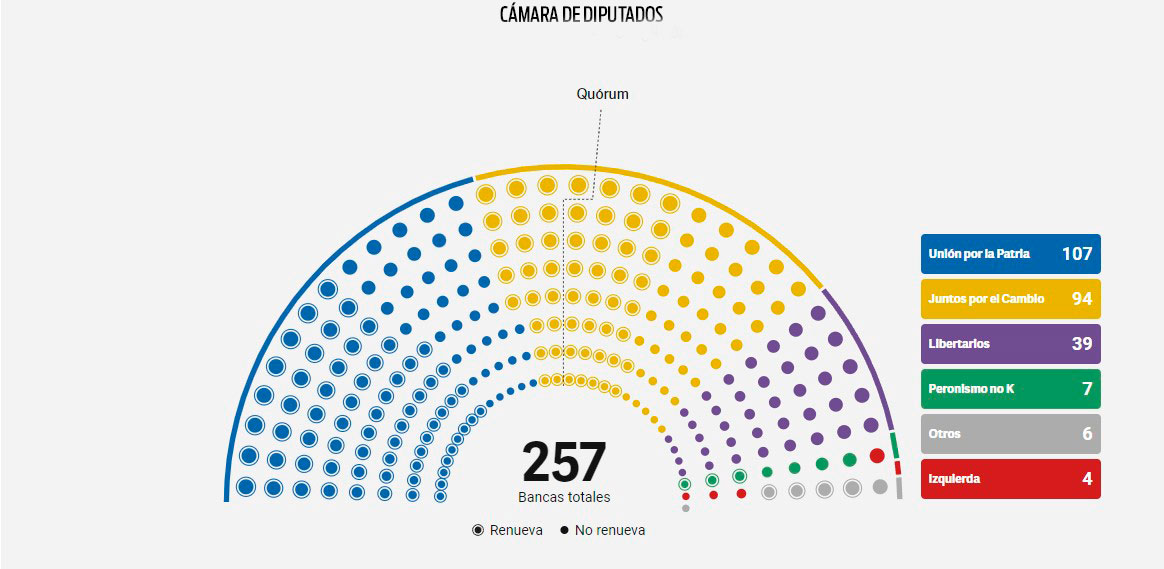 Por el contrario, la futura Cámara mostrará dos minorías importantes pero lejanas al quórum propio, y una tercera minoría que será inferior a la mitad de la segunda minoría. El resultado repercutirá sin lugar a dudas en Juntos por el Cambio, que con su tercer lugar es el claro perdedor de esta elección y habrá que ver entonces cuán homogéneo se mantendrá ese espacio a partir del 10 de diciembre.