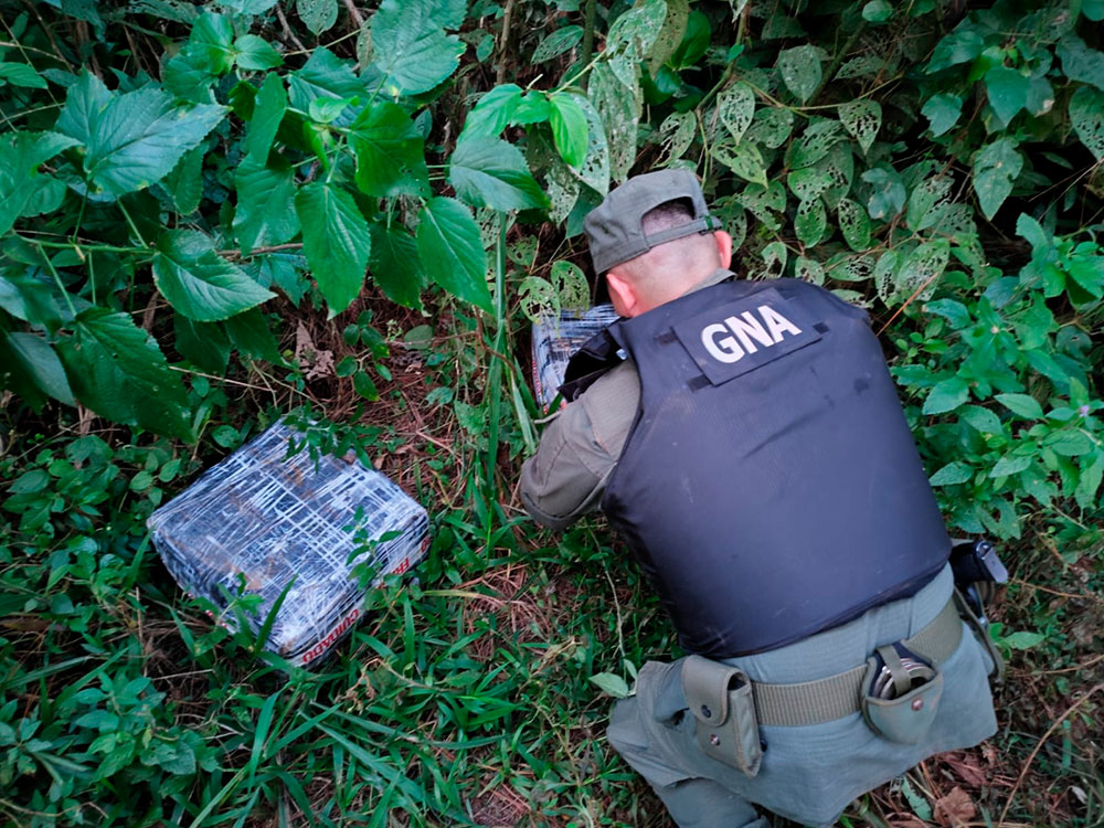 Personal de Gendarmería incautó casi 70 kilogramos de marihuana que se cree fueron descargados momentos antes por narcotraficantes. Fue en las últimas horas en el paraje Paticua-í, en tanto que los delincuentes se dieron a la fuga.