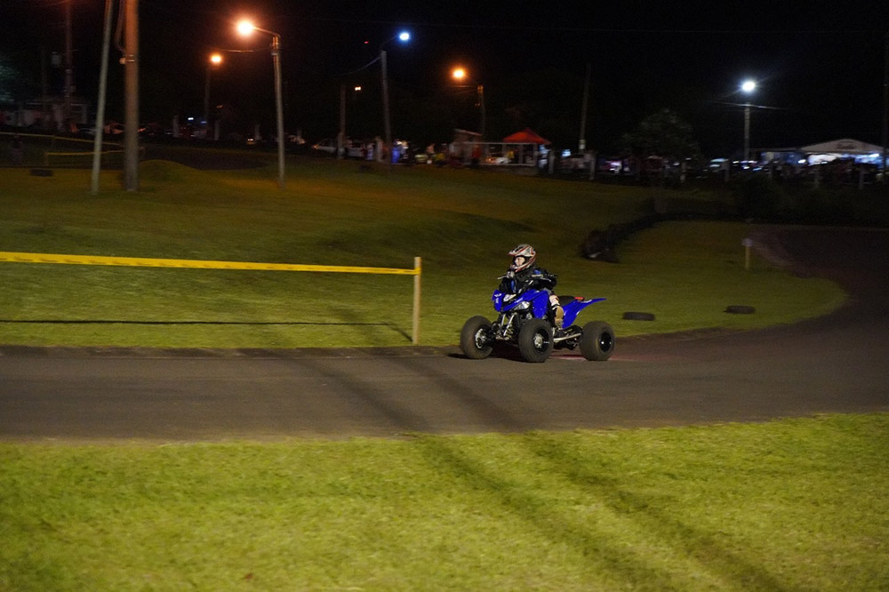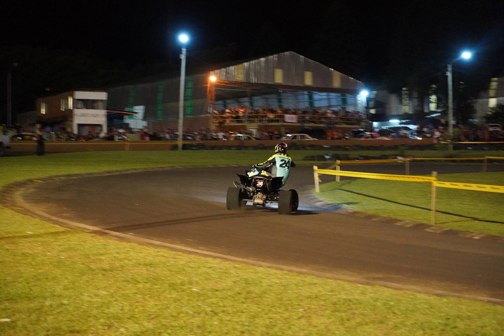 Ya por la noche y con cielo plomizo, pero sin lluvia, comenzó el Súper Nocturno en el Kartódromo Ricardo Balbín de Alem que fue colmado por el público. Como en sus mejores épocas, la tribuna del Kartódromo estuvo a pleno y los fanáticos pudieron ver el paso de todas las motos y todos los Quads.