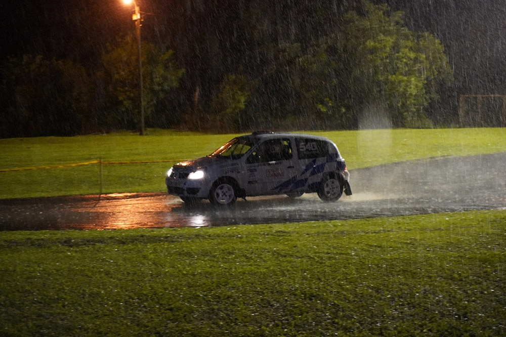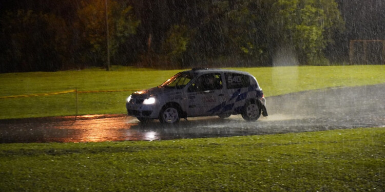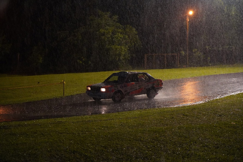 Pero cuando empezaron a girar los autos de la clase N6 empezó a llover, y con cada auto la lluvia se volvía más intensa. Luego empezaron a pasar los primeros autos de la Clase N2 Light y la lluvia iba en aumento. Cuando habían pasado 21 autos y giraba Jose Luis Stellmanzuk-Marcos Kondratiuk (VW Gol Trend de la Clase N3) se desató una intensa tormenta, y como la pista acumuló mucha agua y se volvió insegura, las autoridades de la competencia, con buen criterio, ya que hubo dos semitrompos, resolvieron suspender el súper nocturno y los autos que quedaban giraron en enlace.
