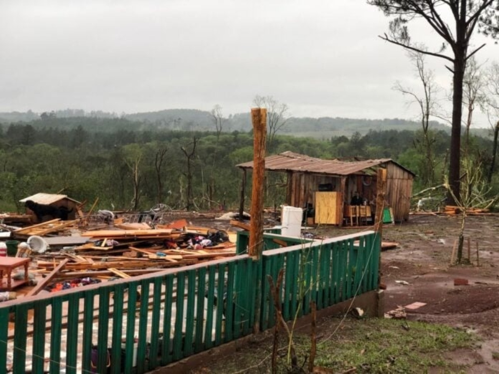 En Salto Encantado un secadero sufrió cuantiosos daños por el fuerte temporal que azotó distintos puntos de Misiones. Por sí solas, las imágenes dan cuenta de la intensidad de los vientos.#másinformación #loquetenésquesaber #Misiones #clima #alertameteorológica #tormenta pic.twitter.com/1MXub4bAuF
