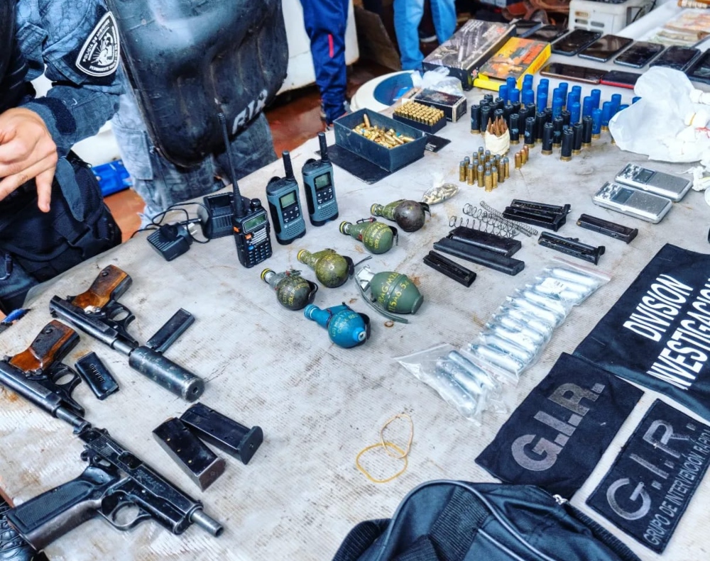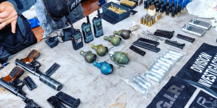 Tras la requisa en la vivienda hallaron una pistola 9mm con dos cargadores, 22 cartuchos, 1 pistola calibre 22 con silenciador con 8 cartuchos, un revolver calibre 32 y otra pistola calibre 22, estos dos últimos sin municiones. Además, la División de explosivos de Bomberos de la policía incautaron 4 granadas de diversas características y explosivos detonadores de cuatro segundos.